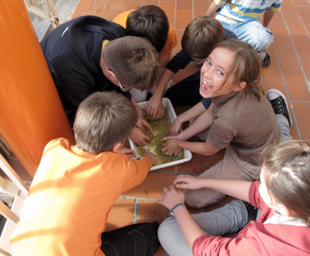 Durante la comida, un equipo de monitores cualificados buscan el equilibrio entre la alimentación y la diversión del alumnado.
